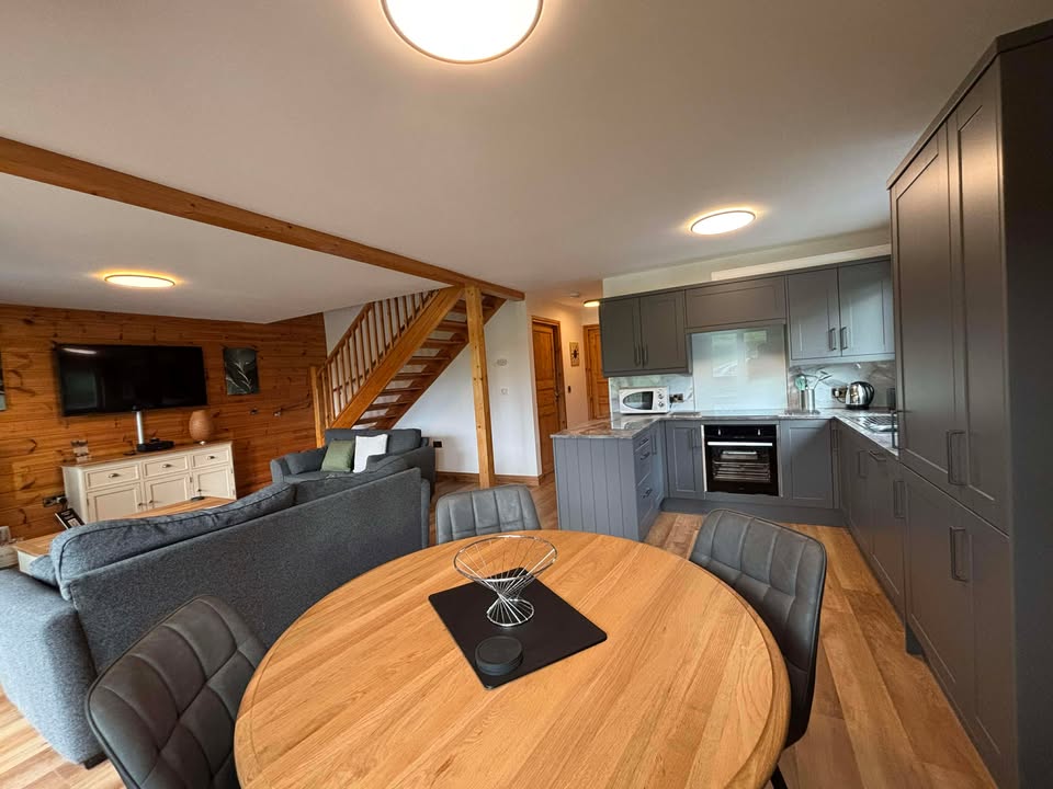 Our spacious 3-bedroom lodges sleep up to 6. The large open plan kitchen and dining area is great for family get togethers. A private hot tub is available on the exterior deck.